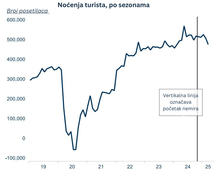 Istini za volju, ovi pokazatelji zasnovani na učestalim ispitivanjima jesu u određenoj meri bili najava činjeničnog stanja koje je bilo nepovoljnije od očekivanog. Stopa rasta BDP-a tokom prve četvrtine 2025. godine je spala na nikad nižu vrednost od 2% u odnosu na prethodnu godinu. Iako su brojke nesumnjivo nezadovoljavajuće, taj period je takođe bio obeležen povišenm stepenom neizvesnosti izazvanim trgovinskim ratovima, zbog čega je teško ustanoviti uticaj koji su na privredu imali građanski protesti.