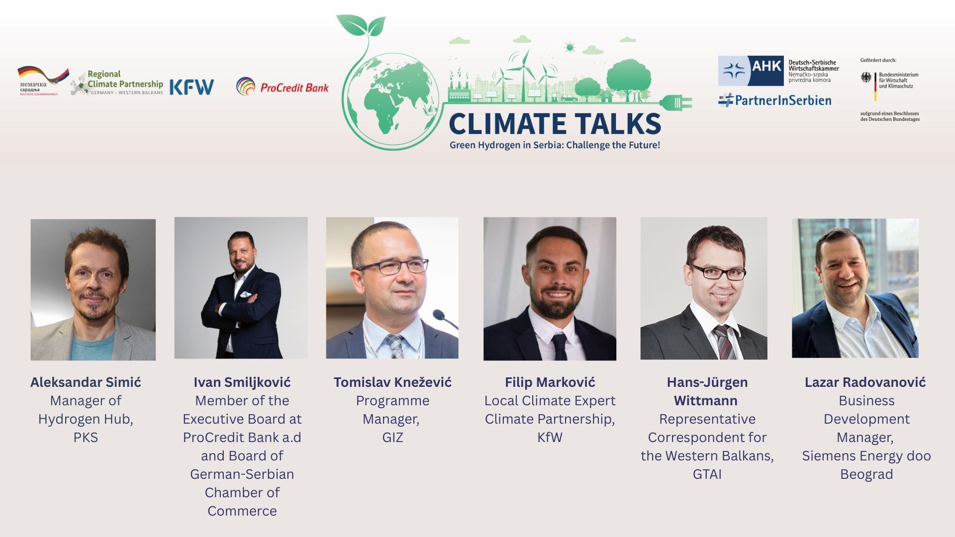 Nemačko-srpska privredna komora, u saradnji sa KfW i ProCredit Bank Srbija organizuje drugu konferenciju iz serije CLIMATE TALKS pod nazivom Green Hydrogen in Serbia: Challenge the Future. Konferencija se bavi temom zelenog vodonika kao jednim od ključnih elemenata energetske tranzicije.